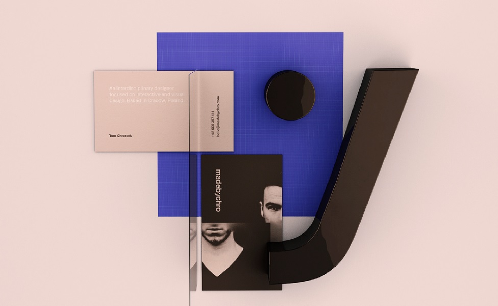 Tomasz Chrostek to tworzący projekty dla klientów z całego świata graphic designer ze świeżym okiem i doskonałym wyczuciem smaku, a także właściciel agencji Made By Chro. W ostatnim czasie uznanie w portalu Behance zdobył projekt jego własnych wizytówek. Nic dziwnego – nieszablonowe podejście do kwestii zdjęcia (rozczłonkowanie go) oraz kolorystyki (pudrowy róż z czernią) przyciągają wzrok. Proste, bezszeryfowe fonty w czerni i bieli, a także nadal modny duotone dopełniają całości.