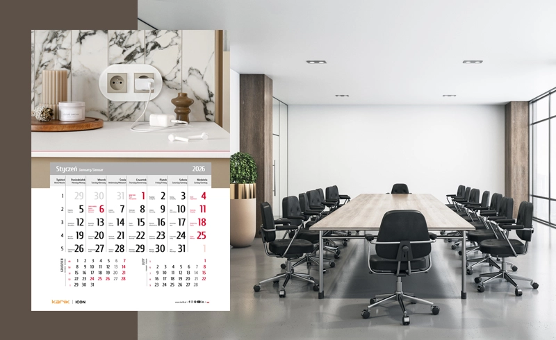 Idealnie jako reklama firmowa sprawdzają się najczęściej wybierane ścienne kalendarze 3- i 4-dzielne – proste w formie, a niezwykle funkcjonalne. Dzięki kilku widocznym miesiącom ułatwiają planowanie spotkań czy urlopów z wyprzedzeniem. Przesuwane okienko sprawia natomiast, że korzystanie z nich staje się intuicyjne. Co ważne, kalendaria tych modeli możemy przygotować na Twoje indywidualnie zamówienie – np. z zaznaczonymi świętami w krajach UE, wydarzeniami branżowymi albo istotnymi datami dla firmy.
